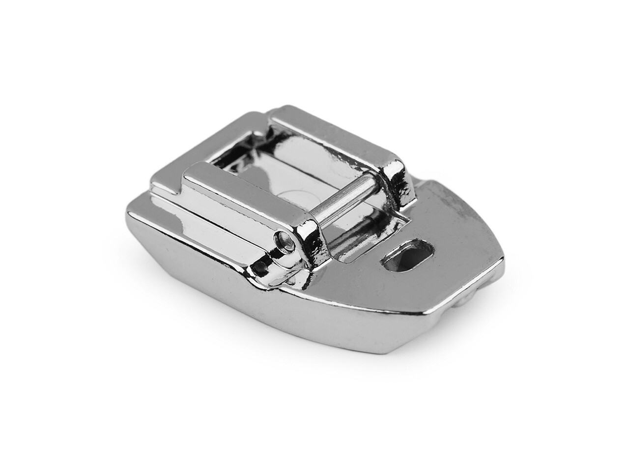 Kovová patka na skrytý zip je nepostradatelným pomocníkem pro každého, kdo chce, aby zip vypadal jako přirozená součást švu. Díky dvěma speciálním drážkám ze spodní části patky zip pevně drží na místě během šití, což výrazně zvyšuje přesnost a zabraňuje posunu materiálu. Rychloupínací systém patky je kompatibilní s většinou domácích šicích strojů, takže ji snadno připevníte a odejmete podle potřeby.