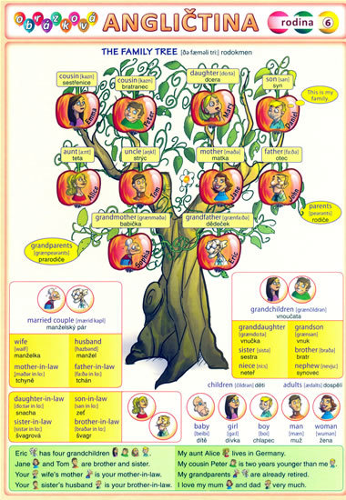 Ilustrovaný slovník zpracovaný dle jednotlivých témat. Názorné ilustrace pomáhají zapamatovat si nová slovíčka. 103 slovíček – rodinní příslušníci (včetně výslovnosti), svatba, rodinný stav, povaha, protiklady, 17 frází. Ilustrace od Petra Kopla.