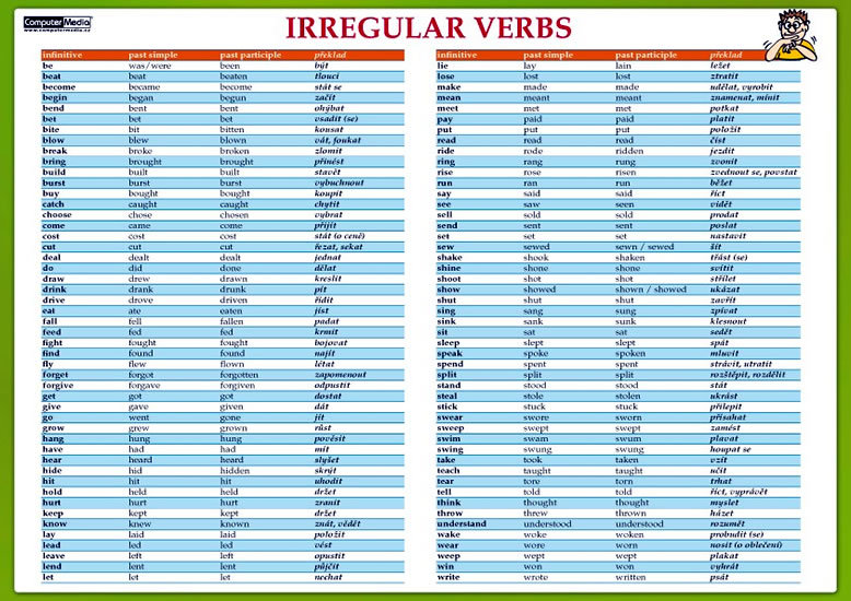 Karta Irregular verbs" - Nepravidelná slovesa"