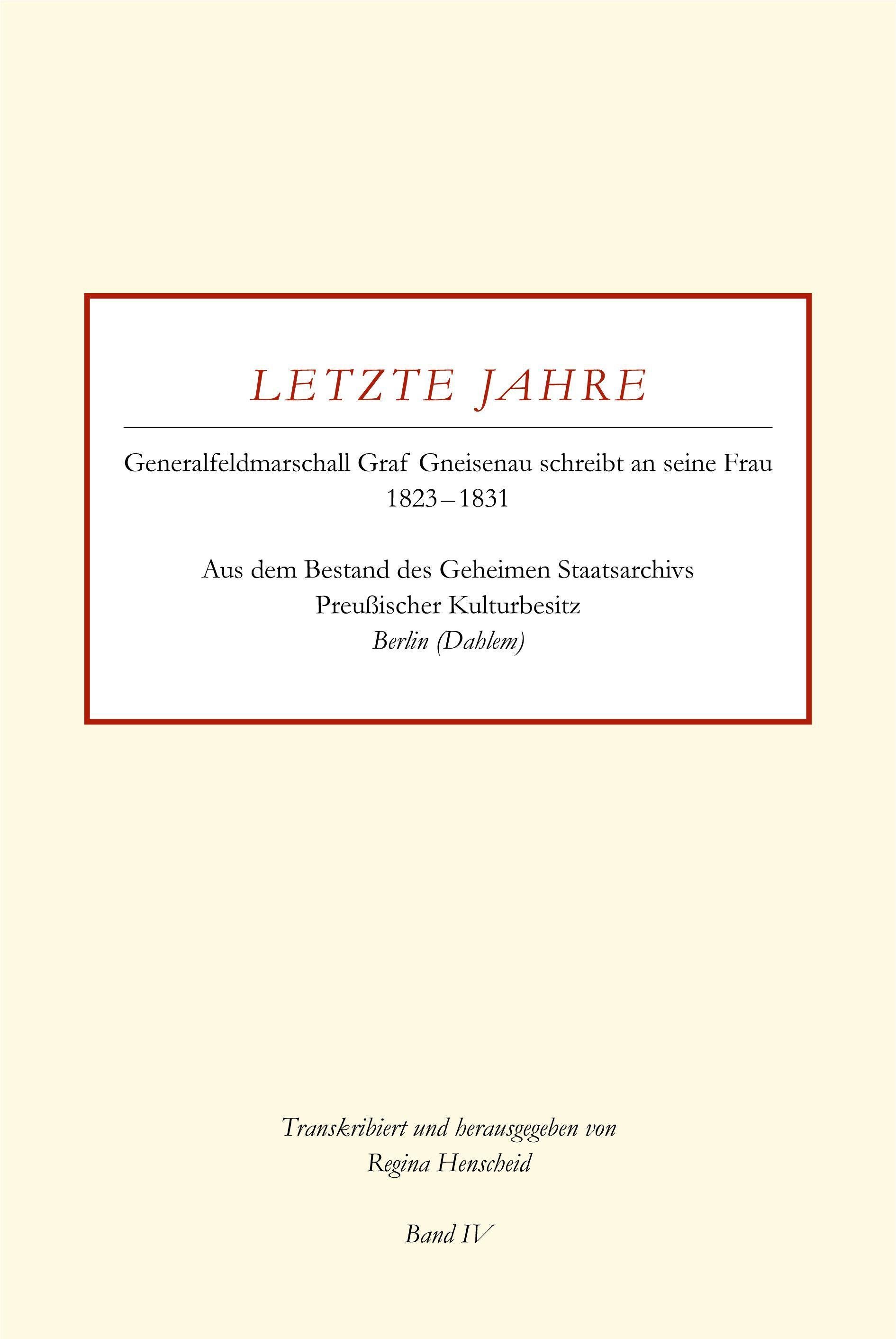 Letzte Jahre / Generalfeldmarschall Graf Gneisenau schreibt an seine Frau 1823 - 1831 Band IV