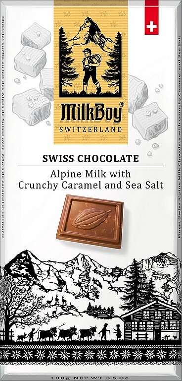 MILKBOY SWISS Mléčná čokoláda crunchy Caramel & Sea Salt 85g
