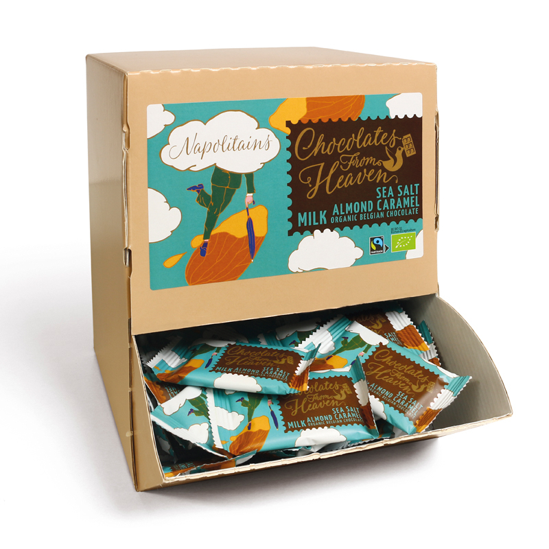 BIO mléčná čokoláda s karamelizovanými mandlemi a mořskou solí 37% 150 x 10g