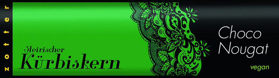 Skvělý čokoládový nugát i pro profesionální použití vyrobený ze štýrských dýňových semínek a kvalitní couverture čokolády se sójovým mlékem místo kravského s přirozeně nazelenalou barvou. Vynikající bio čokoládový nugát, který nadchne při jakékoli práci s čokoládou, kdy chcete dosáhnout nejvyšší kvality.