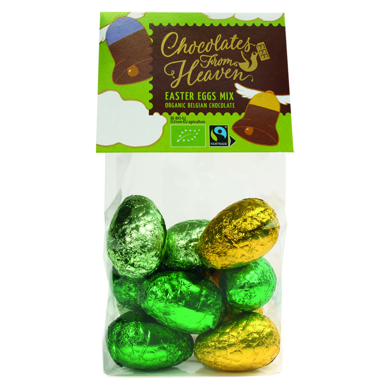 BIO velikonoční belgické pralinky z bílé, mléčné a hořké čokolády 150g