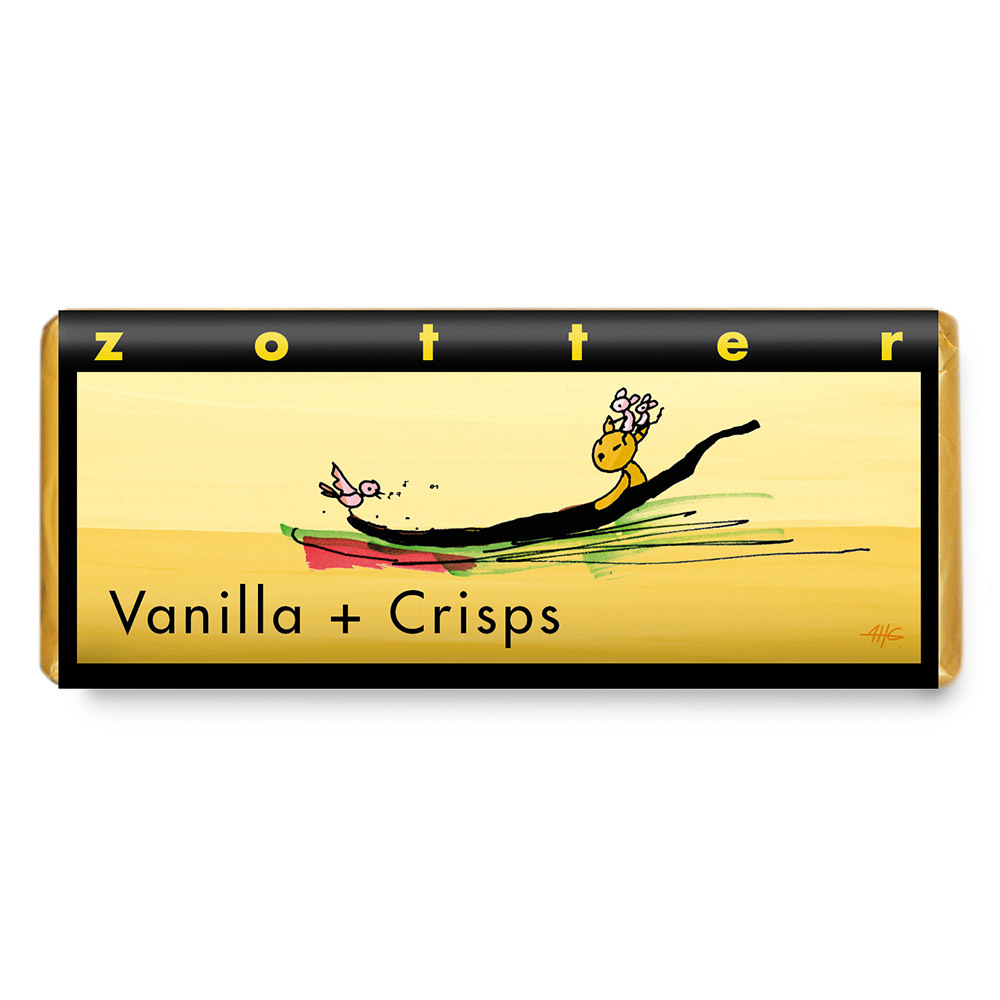 Zotter Bio plněná mléčná čokoláda Vanilka s křupinkami, 70 g