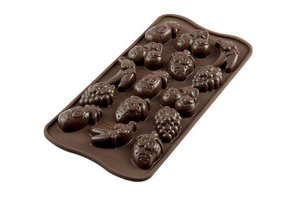 Nepřilnavá forma ze silikonu na přípravu patnácti bonbonů ve tvaru veselého ovoce s očima. číst celé