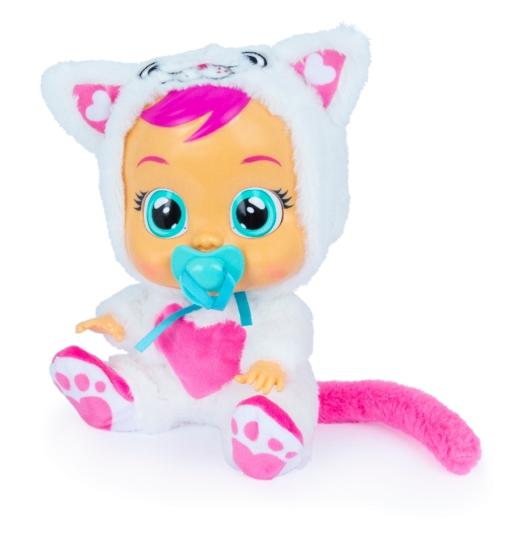 Cry Babies jsou interaktivní, plačící panenky, které vyžadují péči a lásku každé dívky! Cry Babies roní skutečné slzy a vydávají autentické zvuky plačícího batole. Dudlík a objímání je lék na jejich slzy. Každá panenka je oblečená do jedinečného zvířecího oblečku, který můžete snadno sundat. Provoz na 2xLR03/AAA 1.5V, jsou součástí balení.