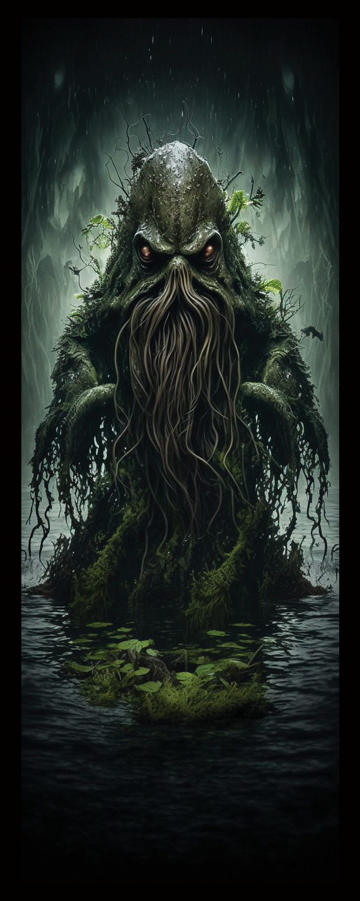 - Design představující Cthulhu v prostředí močálů s realistickými detaily.