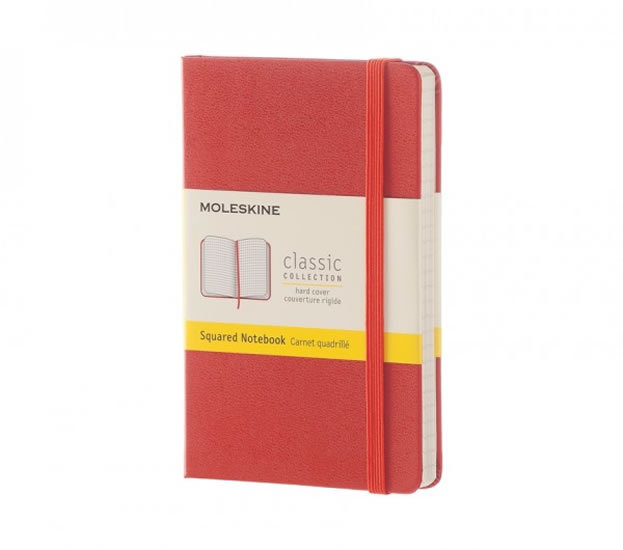 Moleskine brings more color to its notebooks. This Coral Orange version of the classic Squared Pocket Notebook is perfect for writings, thoughts and passing notes. The color-coded bands reveal the notebook's layout. The back of the paper banderole can be saved for later use. The ribbon, bookmark and expandable inner pocket match the cover color. Specifications: - Layout: Squared Paper - Dimensions: 3-1/2 x 5-1/2 - Hard Cover with elastic closure and bookmark ribbon. - Color: Coral Orange - Pages: 192 - Expandable Inner-Pocket - Paper Weight: 70 gsm/47 lb.; Acid-Free (pH Neutral)