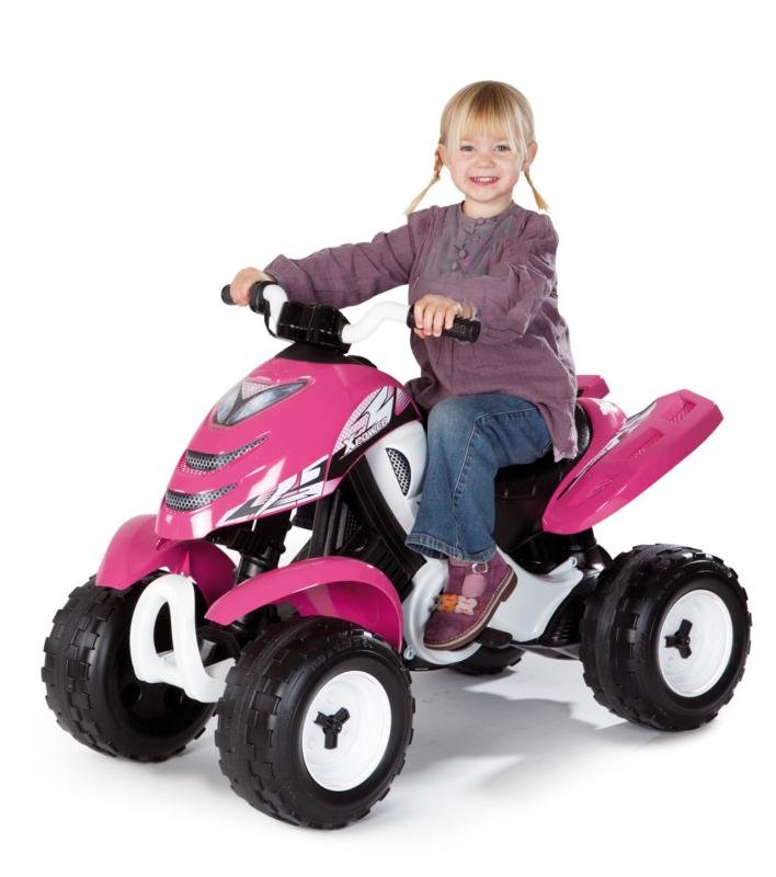 Čtyřkolka pro holčiky může jet max. rychlostí 5 km/h. Ovládání na řídítkách. Max. 2 hodiny provozu při plném nabití baterie. Baterie součástí. Věk: 3+. Hmotnost 9 kg. Rozměry: 95,5x50x63 cm.