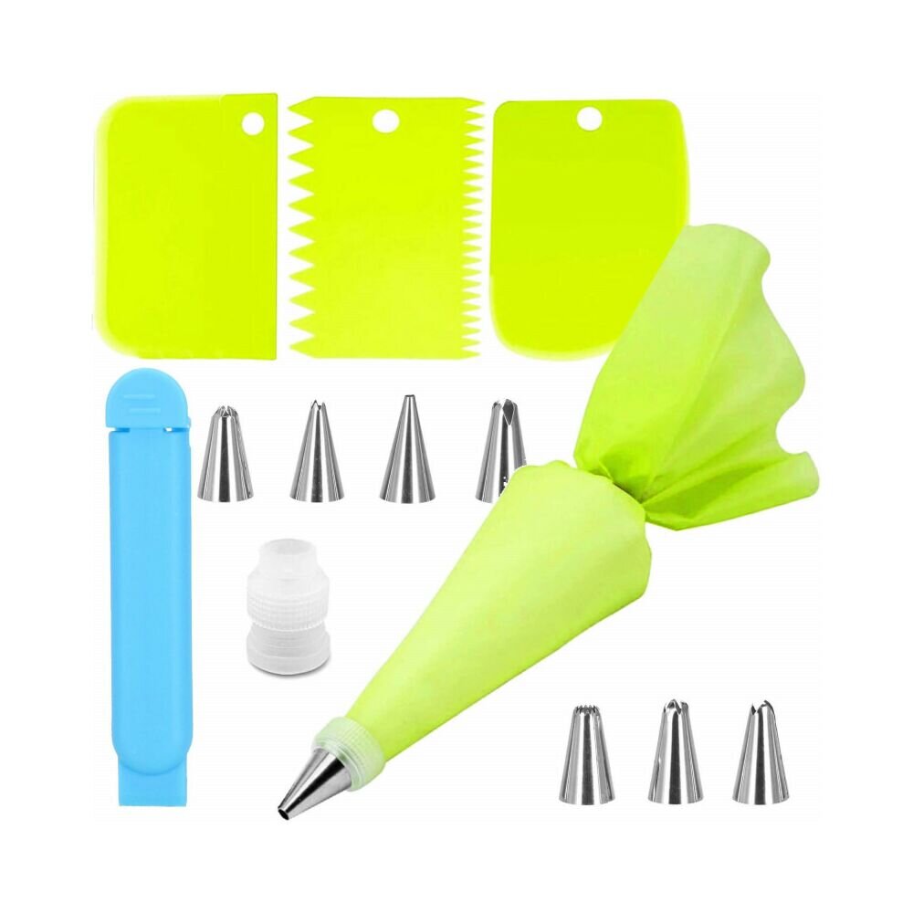 Sada zdobících cukrářských pomůcek. Obsahuje 14 prvků. Špachtle a hroty z nerezové oceli. Certifikované a odolné materiály. Ergonomický tvar rukávů. Perfektní pro zdobení a vytváření dezertů.