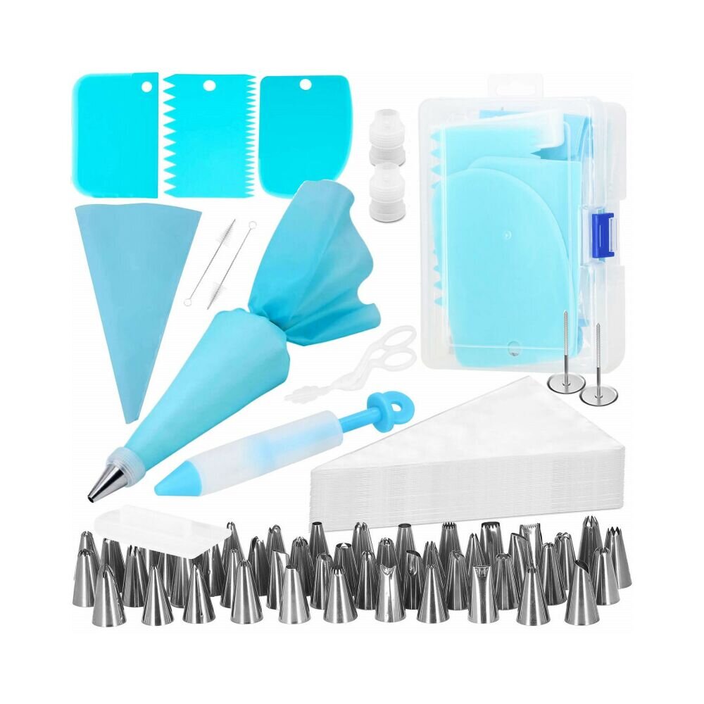 Sada zdobících cukrářských pomůcek. Obsahuje 82 prvků. Špachtle a hroty z nerezové oceli. Certifikované a odolné materiály. Ergonomický tvar rukávů. Perfektní pro zdobení a vytváření dezertů.