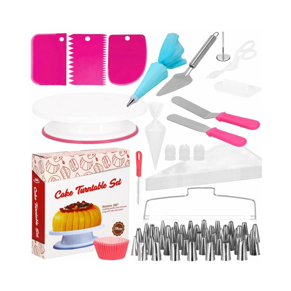Sada zdobících cukrářských pomůcek. Sada obsahuje 200 prvků. Špachtle a hroty z nerezové oceli, silikonové košíčky. Certifikované a odolné materiály. Ergonomický tvar rukávů. Perfektní pro zdobení a vytváření dezertů.