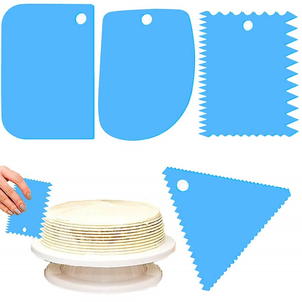 Sada obsahuje čtyři praktické silikonové stěrky, které vám umožní tvarovat a zdobit dorty i další pečené dobroty s lehkostí a precizností. Silikonový materiál zajišťuje flexibilitu, šetrnost k povrchům a snadnou údržbu. V balení najdete stěrku trojúhelníkového tvaru se zoubkovaným okrajem pro efektní vzory, dvě obdélníkové stěrky s různými okraji - zoubkovanými a zaoblenými - a jednu stěrku s hladkými, zaoblenými hranami pro uhlazování a dokonalý finiš.