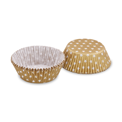 Cukrářské košíčky vhodné na muffiny se vzorem - zlaté s bílými hvězdičkami. Balení obsahuje 40 ks.
