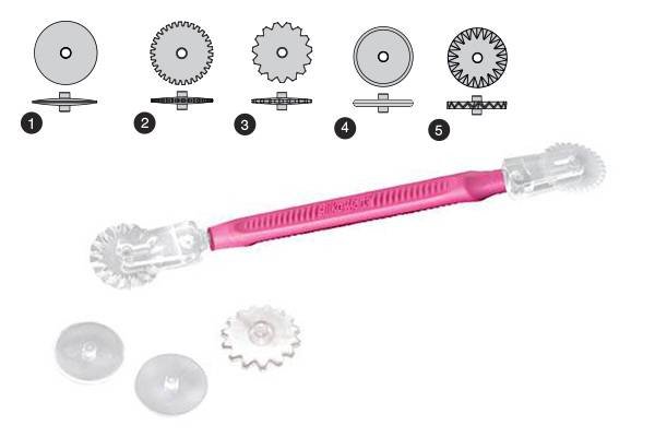 Radélko je vhodné pro různé techniky zdobení a díky rozmanitým nástavcům si můžete vybrat z pětice různých stylů, které perfektně doplní vaše výtvory a dodají jim neopakovatelný vzhled.
