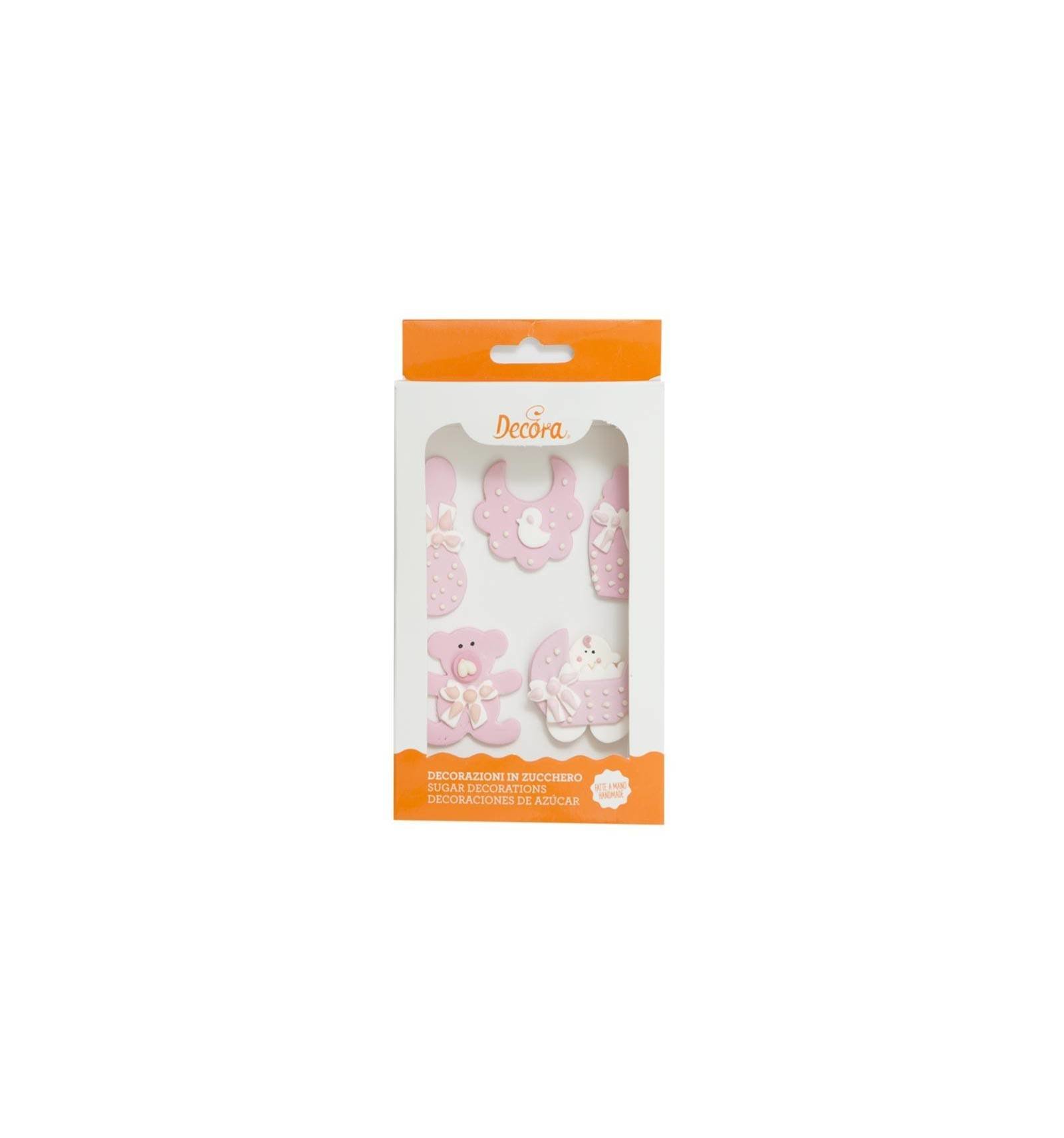 Cukrová dekorace na dort růžová - holčička 5ks - Decora