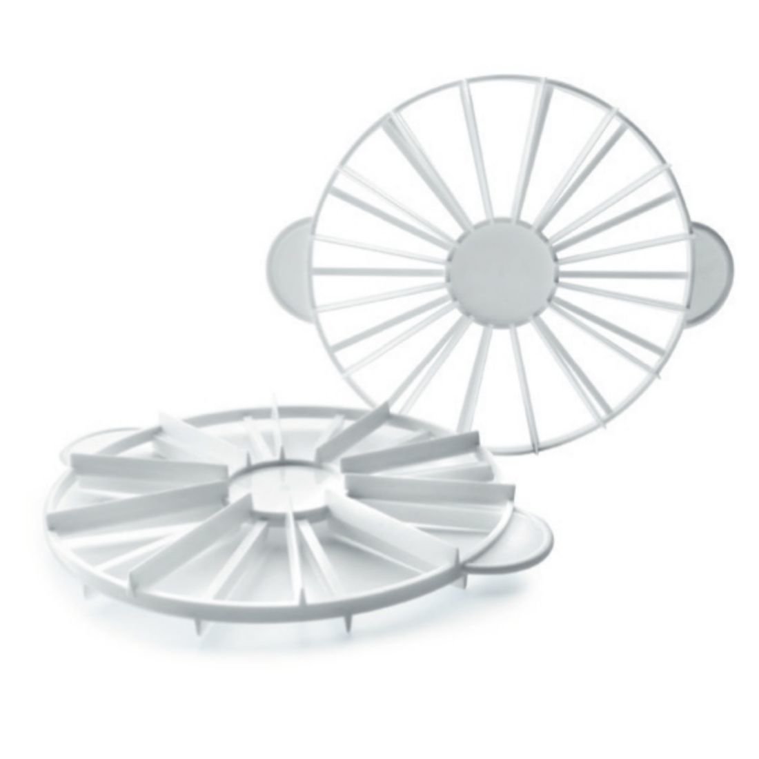 Značkovač na dorty vám poslouží k elegantnímu a jednoduchému označení dílů na dortu. Stačí ho přiložit a jemně otisknout. Pak ho odložíte a na povrchu se objeví značky, podle kterých pak dort nakrájíte. Navíc je v oboustranném provedení s ergonomickými rukojeťmi a dortové díly nakrájí na rovnoměrné plátky.