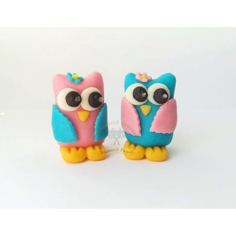 Figurka na dort sova růžové barvy, 30 g. Vyrobena z kokosové hmoty. číst celé