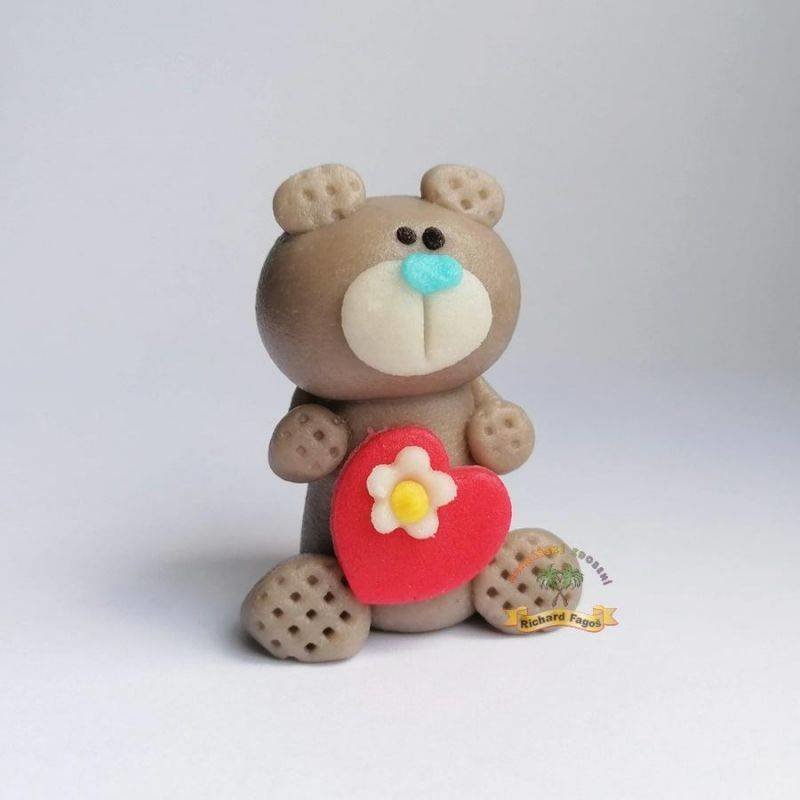 Figurka na dort medvídek šedý s červeným srdíčkem 5cm z kokosové hmoty - Fagos