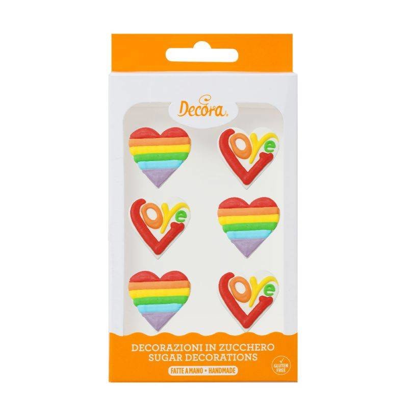 Cukrové dekorace duhové srdce, 6ks - Decora