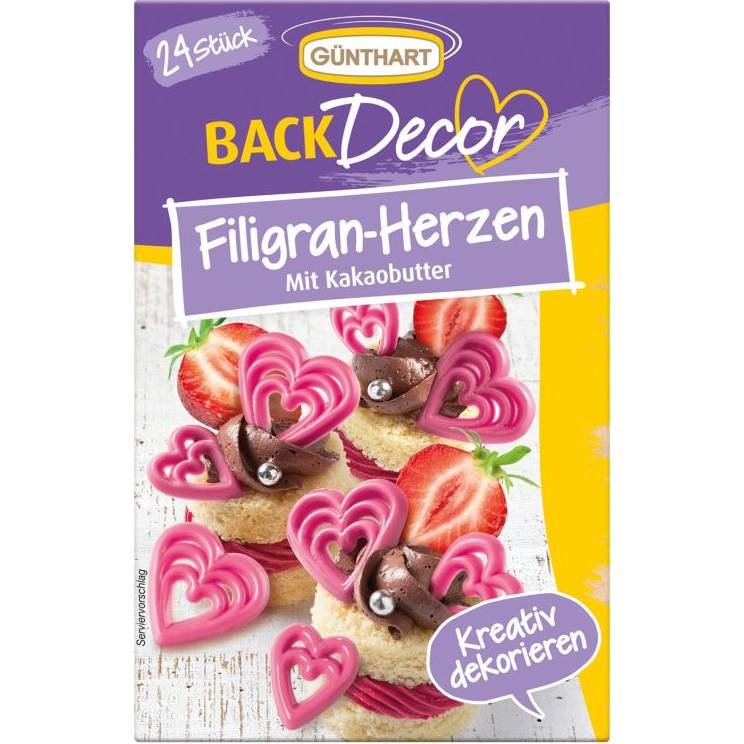 Čokoladové decorace růžové srdce, 24ks - Gunthart