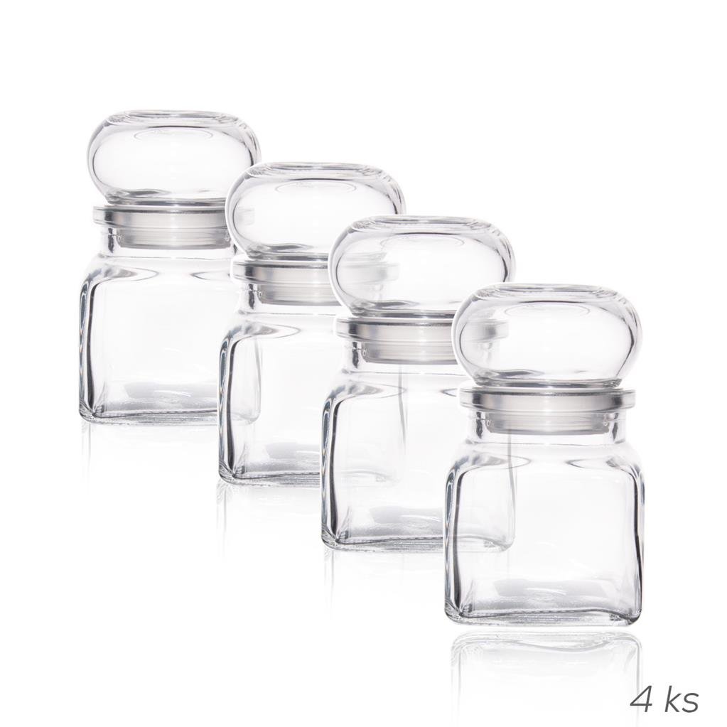 Kořenka s víčkem se silikonovým těsněním. Přehledně uložíte koření, neztratí chuť ani aroma. Sada 4 ks. Materiál: sklo. Rozměry: objem 0,12 l, 5,5x5,5x10 cm.