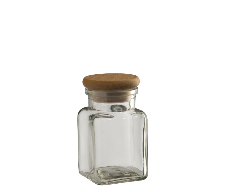 Skleněná kořenka s dřevěným víčkem. Na víčku je plastové těsnění. Kořenka je vhodná zejména k uchování koření, nebo sypkých potravin. Objem 150ml.