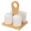 Dochucovací souprava na podnosu - sůl a pepř budete mít po ruce při vaření i při stolování, stojánek uloží zásobu ubrousků. Materiál: porcelán, bambusové dřevo. Rozměry: solnička a pepřenka pr. 5 cm, v. 6,5 cm, stojánek na ubrousky 10,5x4x7 cm, celkově 13x12x14,5 cm.