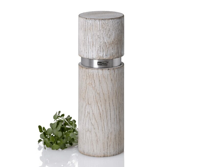 Mlynček na korenie alebo soľ AdHoc z dreva so svetlým antique prevedením a patentovaným mlecím mechanizmom CeraCut, vďaka ktorému je možné jednoducho nastaviť hrúbku mletia.