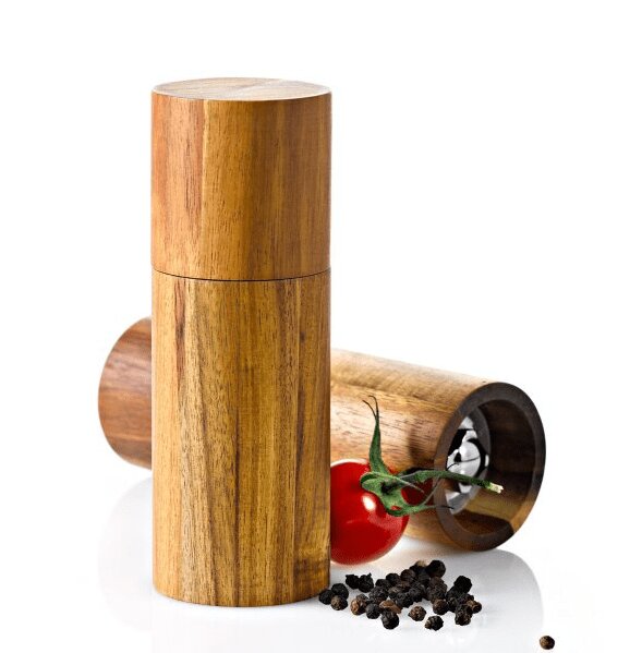 Ručný mlynček na korenie alebo soľ AdHoc ACACIA s jednoduchým dizajnom vyrobený z dreva, s patentovaným keramickým mlecím mechanizmom CeraCut®.