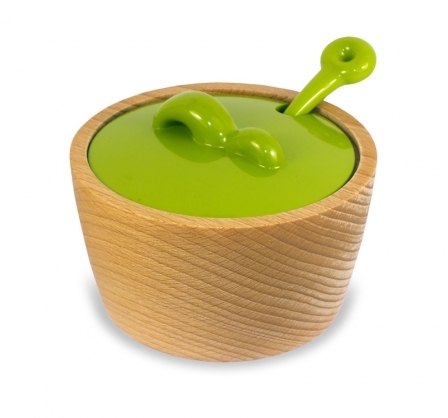 Sada ze série BUBBLES v zelené barvě obsahuje 1x dřevěnou cukřenku s plastovým víčkem, 1x plastovou lžičku.