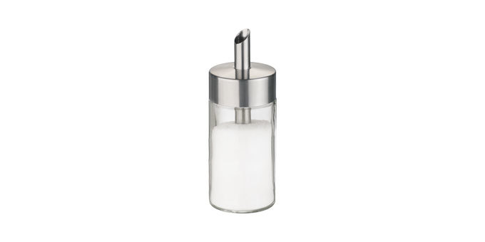 Dávkovací cukřenka pro domácnosti i gastronomická zařízení. Vyrobeno z prvotřídní nerezavějící oceli a skla. 5 roků záruka.