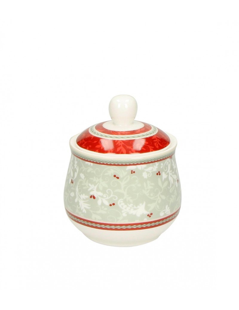 Cukřenka z porcelánu v šedé/červené barvě s vánočním motivem.
