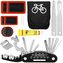 Tato praktická multitool sada obsahuje všechny základní nástroje, které potřebujete k rychlé a efektivní opravě jízdního kola i pneumatik. Najdete zde klíče na paprsky, plochý i křížový šroubovák, otevřený klíč a navíc kompletní set na opravu pneumatik - lepidlo, záplaty a náhradní ventily. Díky kompaktní velikosti a praktickému pouzdru s úchytem ji snadno uložíte do batohu nebo košíku na kolo.