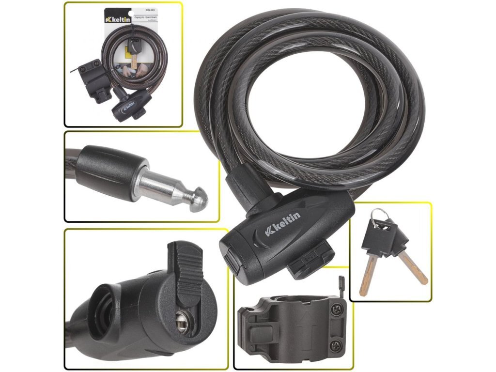 Zámek na jízdní kolo, lanový, 12x1200mm, zamykání na klíč KELTIN