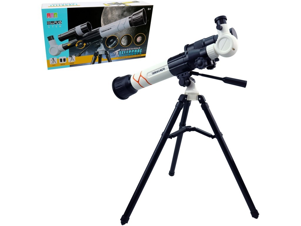 Dalekohled 45 x 25 x 9 cm. Pomocí dětského dalekohledu vzbudíte u dětí zájem o pozorování hvězd. Věrná napodobenina skutečného dalekohledu poskytne spoustu zábavy a určitě pomůže rozvinout zájem o astronomii nebo jen pozorování přírody a vzdálené krajiny.Balení dalekohledu obsahuje:Stativ.Točící knoflík - nastavení ohniskové vzdálenosti teleskopu.Zvětšení 20x / 30x / 40x.Klip na telefon.Rozměr: 45 x 25 x 9 cm.Materiál: plastDoporučený věk: 6 +