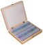 The prepared slides are marked with english and german descriptions. A printed list of the contents is included.