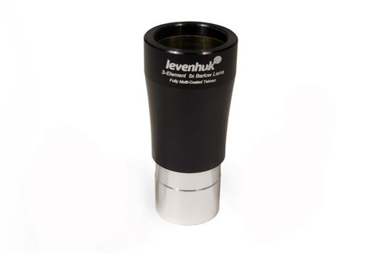 Barlowova čočka Levenhuk 5x je tříprvková apochromatická čočka s vícevrstvým antireflexním povlakem na všech optických prvcích, která pětkrát zvětšuje ohniskovou vzdálenost a zvětšení jakéhokoliv hvězdářského dalekohledu.