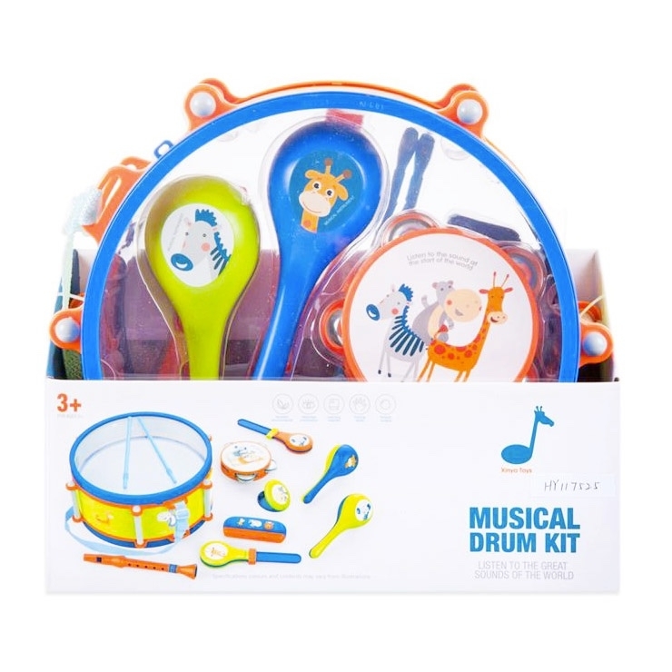 Mini orchestr pro malé muzikanty, který se vejde do jedné krabice. Upevňuje vztah k hudbě a cvičí rytmické dovednosti dítěte. Obsah soupravy: buben, paličky, tamburína, rumbagule, ústní harmonika, zobcová flétna. Vhodné pro děti od 3 let. číst celé