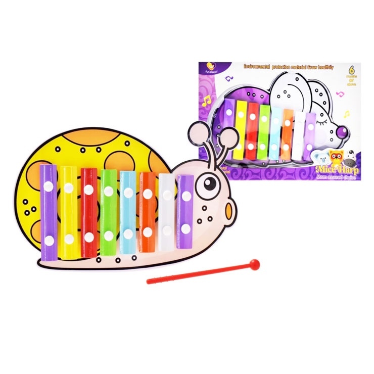 Barevný xylofon ve tvaru zvířátka. Možnost výběru ze dvou druhů a to myška nebo slimák.Rozmer šnek - 29,5 x 17cm / myška - 29,5 x 17,5 cm číst celé