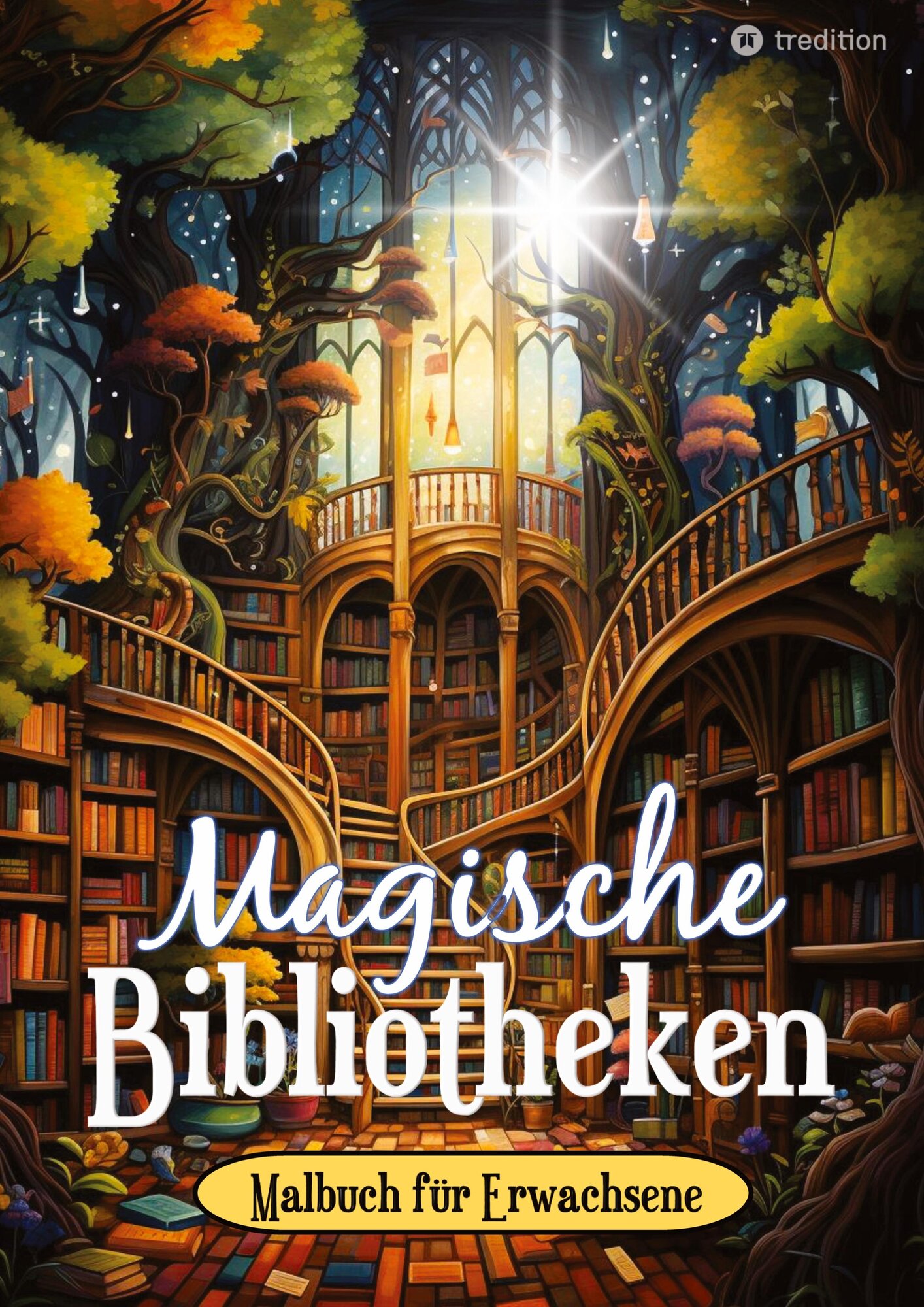 Fantasy Malbuch für Erwachsene und Jugendliche - Magische Bibliotheken Fantasiewelt Bücher - Ausmalbuch für Stressabbau & Achtsa (německy)