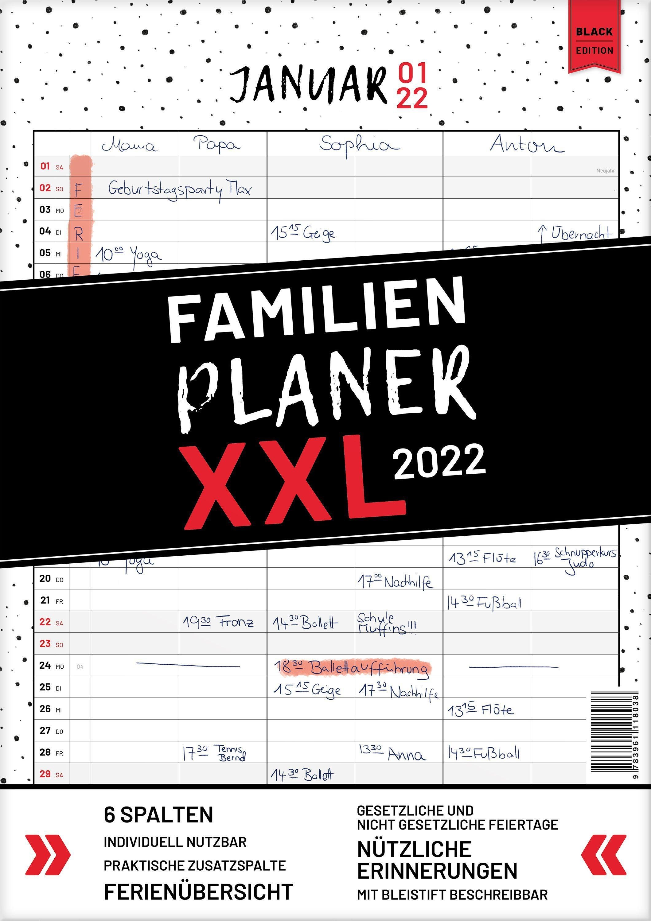 XXL Familienplaner 2022 zum Aufhängen in DIN A3. Hochwertiger und übersichtlicher Familienkalender 2022 mit 3 bis 6 Spalten, plu (německy)