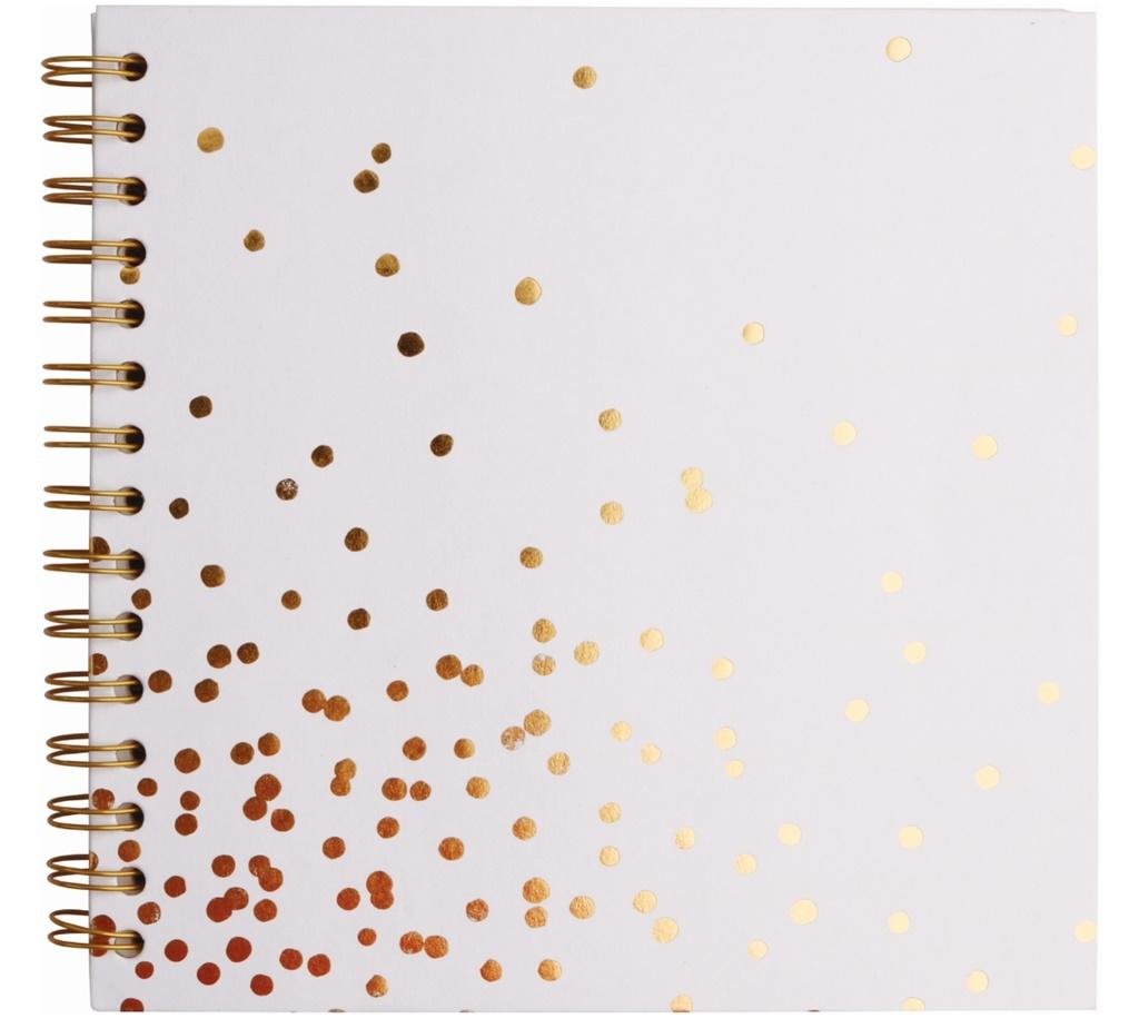 Perfektní volba pro uchování vašich nejcennějších vzpomínek. Tento elegantní album s luxusní zlatou spirálou a zlatými detaily zaujme na první pohled a stane se ozdobou každé domácnosti či stolku.