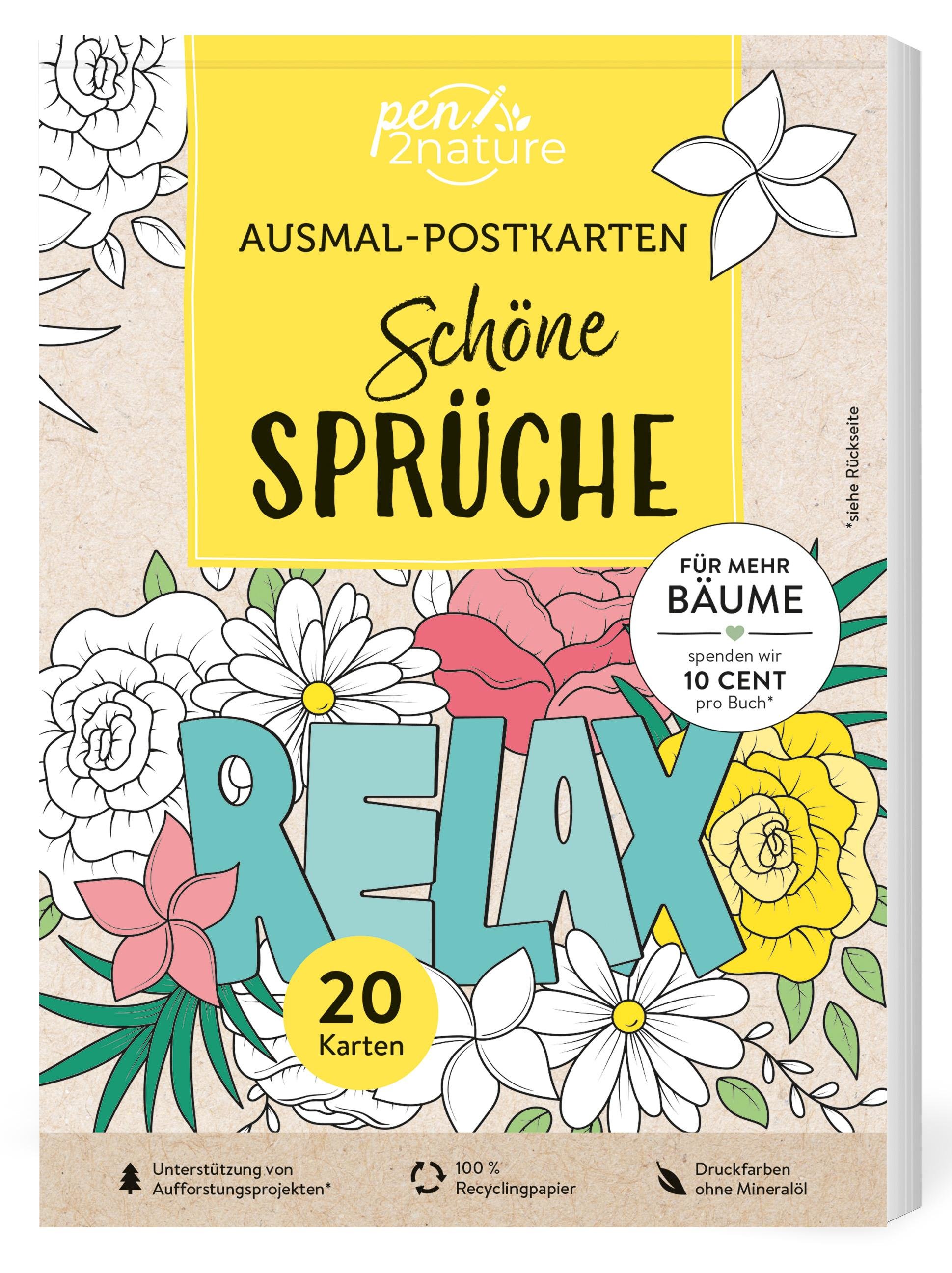 Ausmal-Postkarten Schöne Sprüche | 20 Karten (německy)