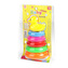 Pět kroužků v jasných barvách se snadno skládá na sebe, což nejen rozvíjí motoriku a koordinaci rukou, ale také stimuluje vizuální vnímání a představivost dítěte. Hra s touto pyramidou je vhodná již od narození, ačkoli ideální doba k samostatné hře je od 12 měsíců, kdy jsou děti zručnější a lépe zvládnou manipulaci s kroužky.