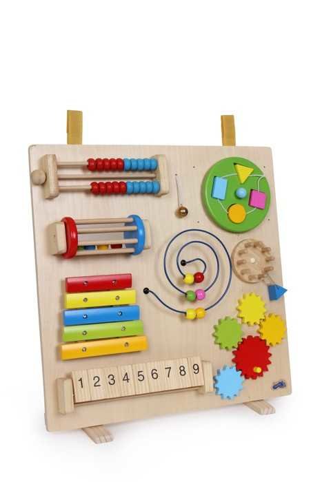 Na této motorické desce lze hravým způsobem trénovat jemná motorika prstů pomocí 8 různých funkcí! Zde mohou nejmenší děti posouvat dřevěné perličky na počitadle, hrát jemné tóny na xylofonu, protáhnout dřevěné perličky po kovové smyčce, zasouvat různé tvary do otáčivého disku nebo rozpohybovat 5 různě velkých ozubených kol. Kombinace robustní překližky a lakovaných dřevěných dílů stále znovu inspiruje nejmenší členy rodiny! Včetně stabilizačních otočných nohou a 2 suchých zipů k připevnění, např. na židli.Německá firma Legler zaměřená na výrobu kvalitních dřevěných hraček od roku 1996. Všechny dřevěné hračky značky small foot mají označení CE a jsou vyráběny dle evropské normy pro bezpečnost hraček EN 71. Použité barvy jsou speciálně vyvinuty pro dřevěné hračky a jsou odolné i proti slinám dětí. Dřevo, které se používá pro tyto hračky, většinou pochází z lesnických společností zapojených do zalesňování. To nabízí všem zákazníkům možnost přispět k zachování přirozeně rostoucích lesů. Dřevěné hračky small foot jsou zářivě barevné produkty, které jsou vyrobeny převážně z přírodních surovin - dřeva. Dětem dělají radost od útlého věku, rozvíjí jejich hmatové a smyslové dovednosti. Cílem značky small foot je podporovat duševní a fyzický vývoj dětí.