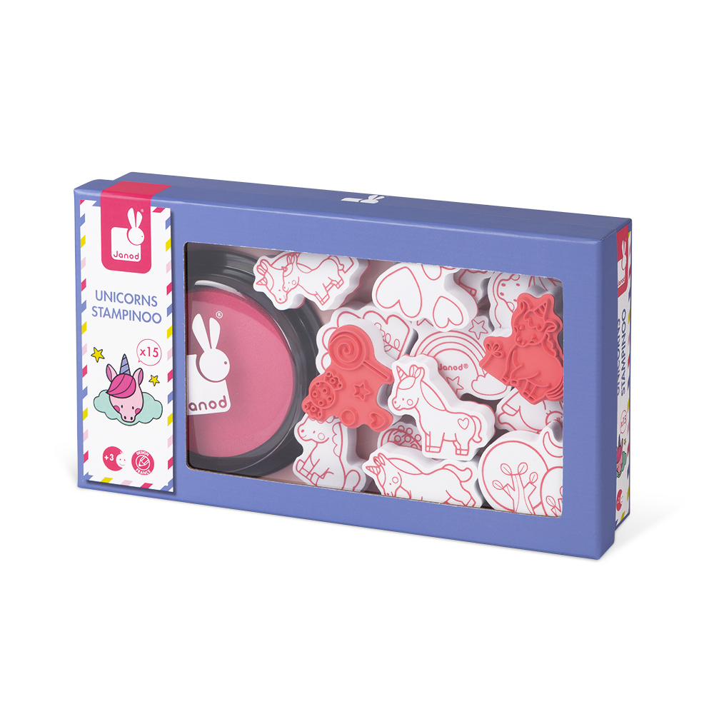 Dětská razítka Jednorožec Stampinoo Janod pro děti od 3 let 15 ks