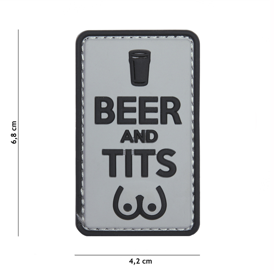 Gumová nášivka 101 Inc nápis Beer and Tits - šedá