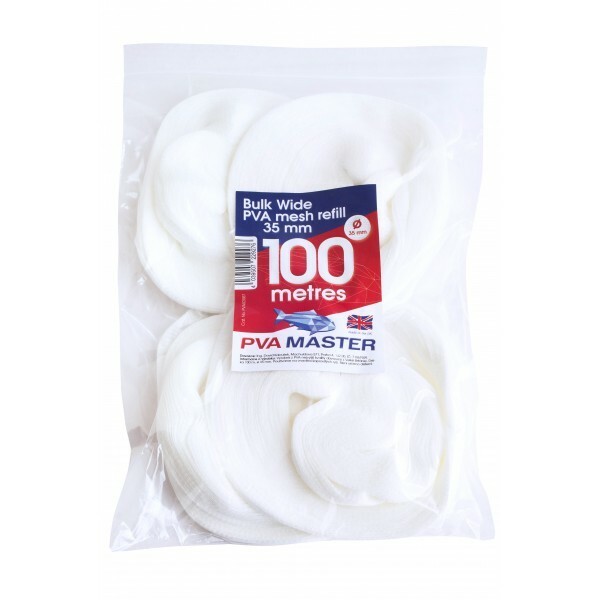 Kvalitní PVA punčocha vyrobená v Anglii renomovaným výrobcem nabízí nekompromisní kvalitu za skvělou cenu. PVA se rozpouští za jakýchkoliv podmínek i ve velmi studené vodě. Vnaší nabídce naleznete od 15mm průměru po průměr 35mm. Nechybí ani velice populární 25 mm punčocha varianty MICRO MESH určená kplněním extrémně jemných krmných směsí (moučky , method mixy) Baleno vigelitovém sáčku 4 x 25 metrů punčochy. PVA 02007……… 100 m průměr 35 mm
